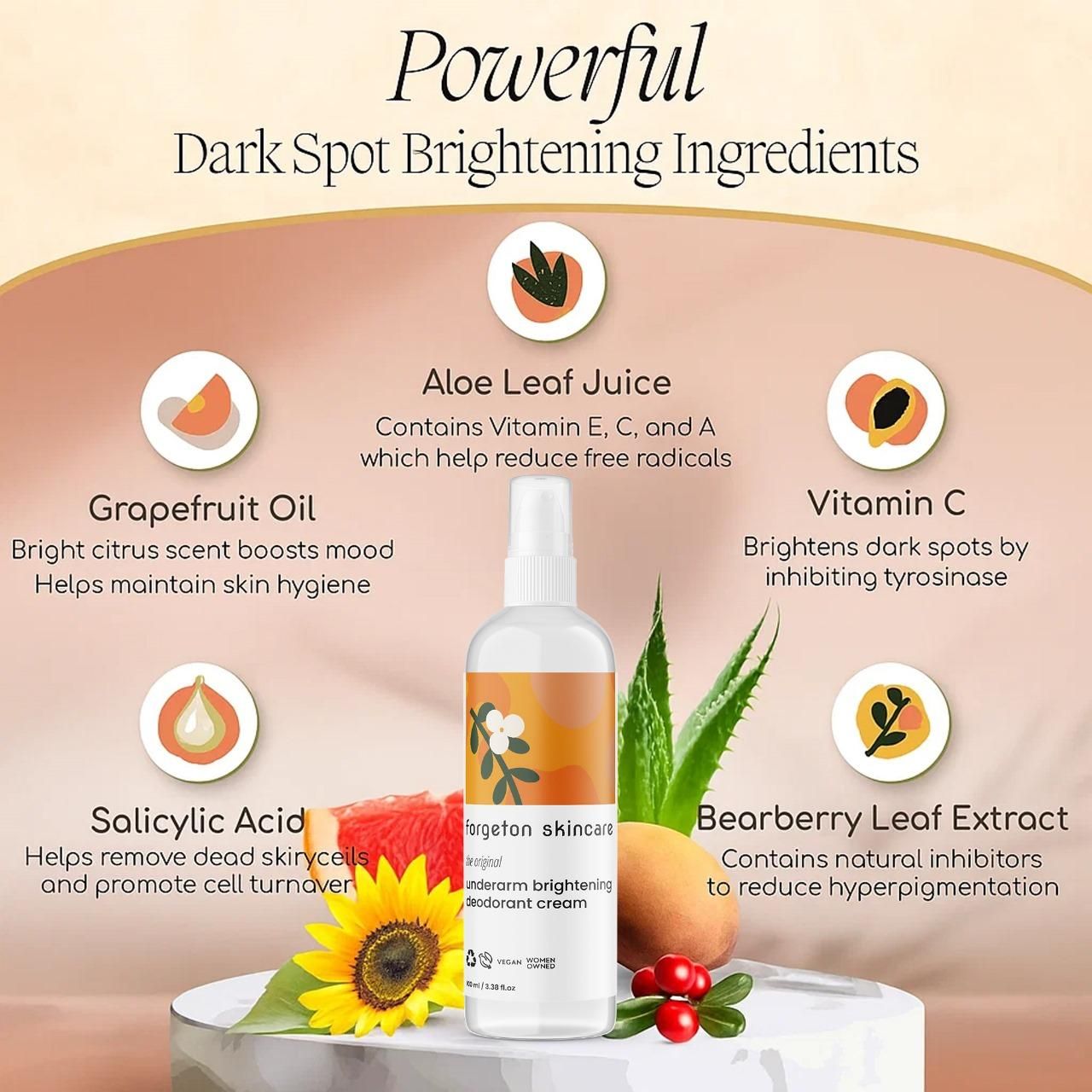 Forgotten Skincare Underarm Brightening Deodorant Cream 200ml (Pack of 2)